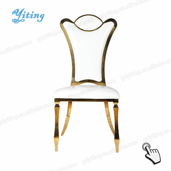Sillas modernas de banquete de boda con marco de hierro de acero inoxidable dorado con respaldo de cuero en forma de corazón apilable para comedor de Hotel interior y exterior