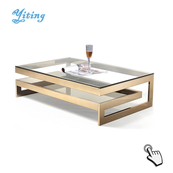 Meja Kopi Model Baru Meja Makan Kopi Top Kaca Kotak Baja Antikarat
