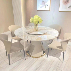 Estilo moderno europeu redondo mármore mesa de jantar superior extensível e dobrado conjunto para sala de estar casa móveis para uso apartamento