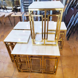 Atacado Personalizado Moderno 1 + 4 Mesa De Café De Aço Inoxidável Removível Retangular Mármore Top Dining Room Móveis para Hotéis