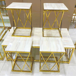 Đồ Nội Thất Sinh Hoạt Hiện Đại 4 + 1 Bộ Bàn Cà Phê Khung Thép Không Gỉ Marble Top Bộ Bàn Cà Phê